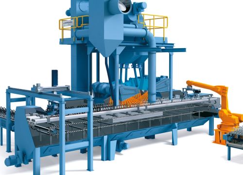 本机是针对各种圆柱弹簧的表面强化处理而设计开发的通过式通过式抛丸强化设备。该机具有生产效率高、设备结构紧凑、适应能力强等特点。